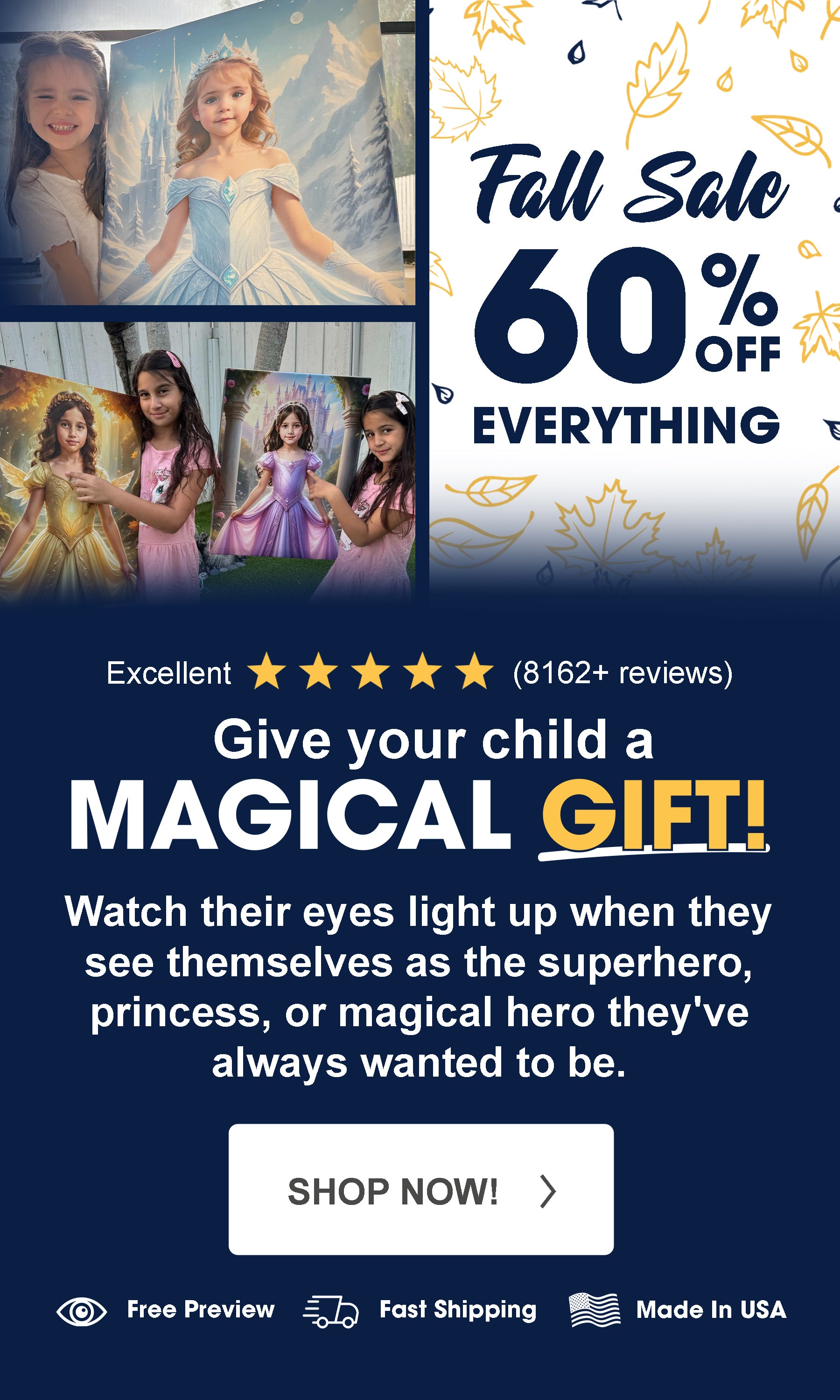 Bring your child’s imagination to life with a magical portrait that turns them into a brave knight, enchanting princess, or fearless explorer. All we need is a photo and we’ll do the rest.