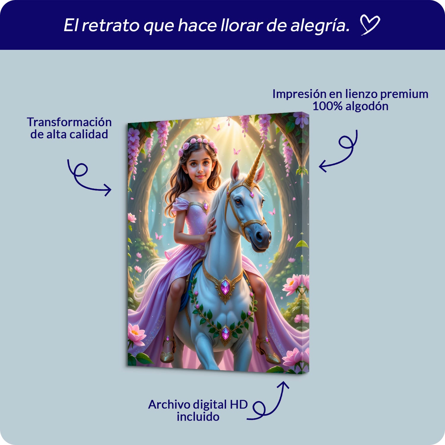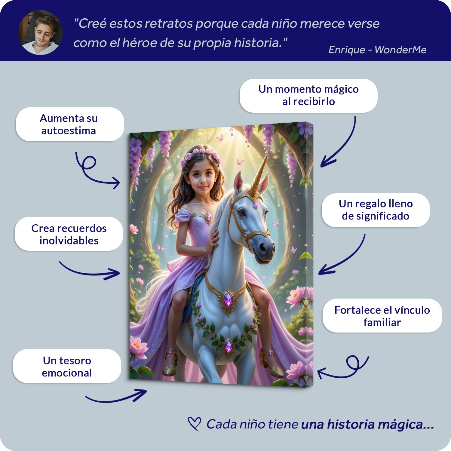 Este retrato personalizado es mucho más que una simple impresión. Fue creado para transformar a tu pequeña en la protagonista de su historia favorita.