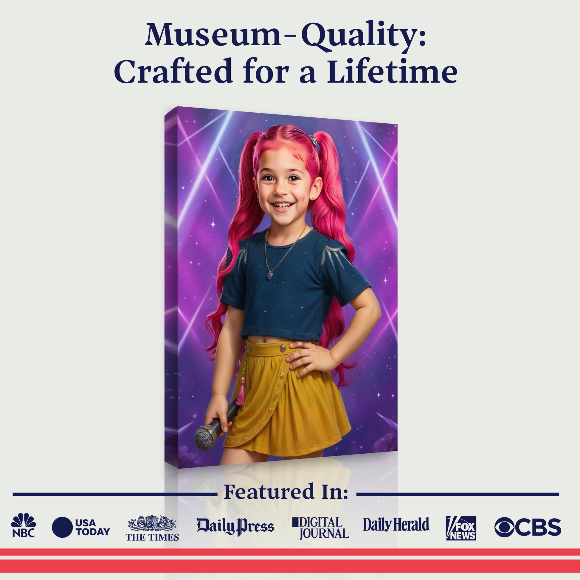 Our incredible AI creates each portrait just for them, then we print it on beautiful canvas. Join over 150,000 families who've made their kids feel like stars!
