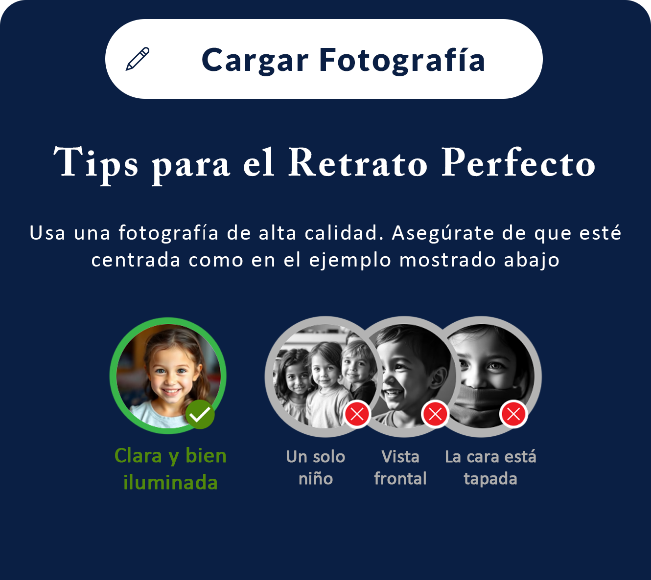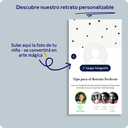 2️⃣ Carica una foto del tuo bambino—assicurati che sia chiara e che si veda bene il viso. 📷