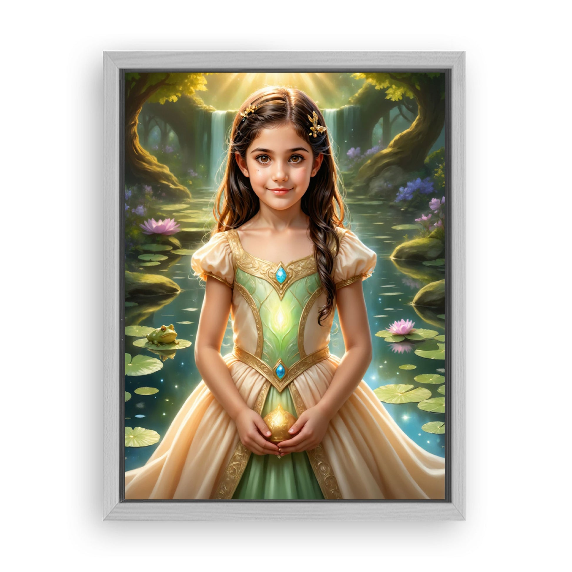 Save 33% When You Add A Frame To Your 12x16 'The Frog Princess by the Pond' Canvas Now