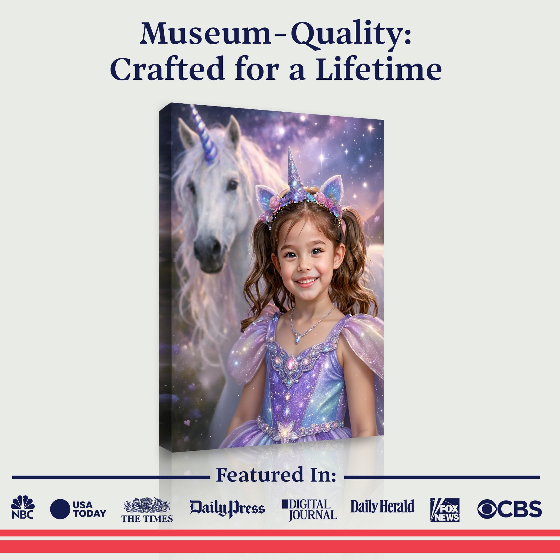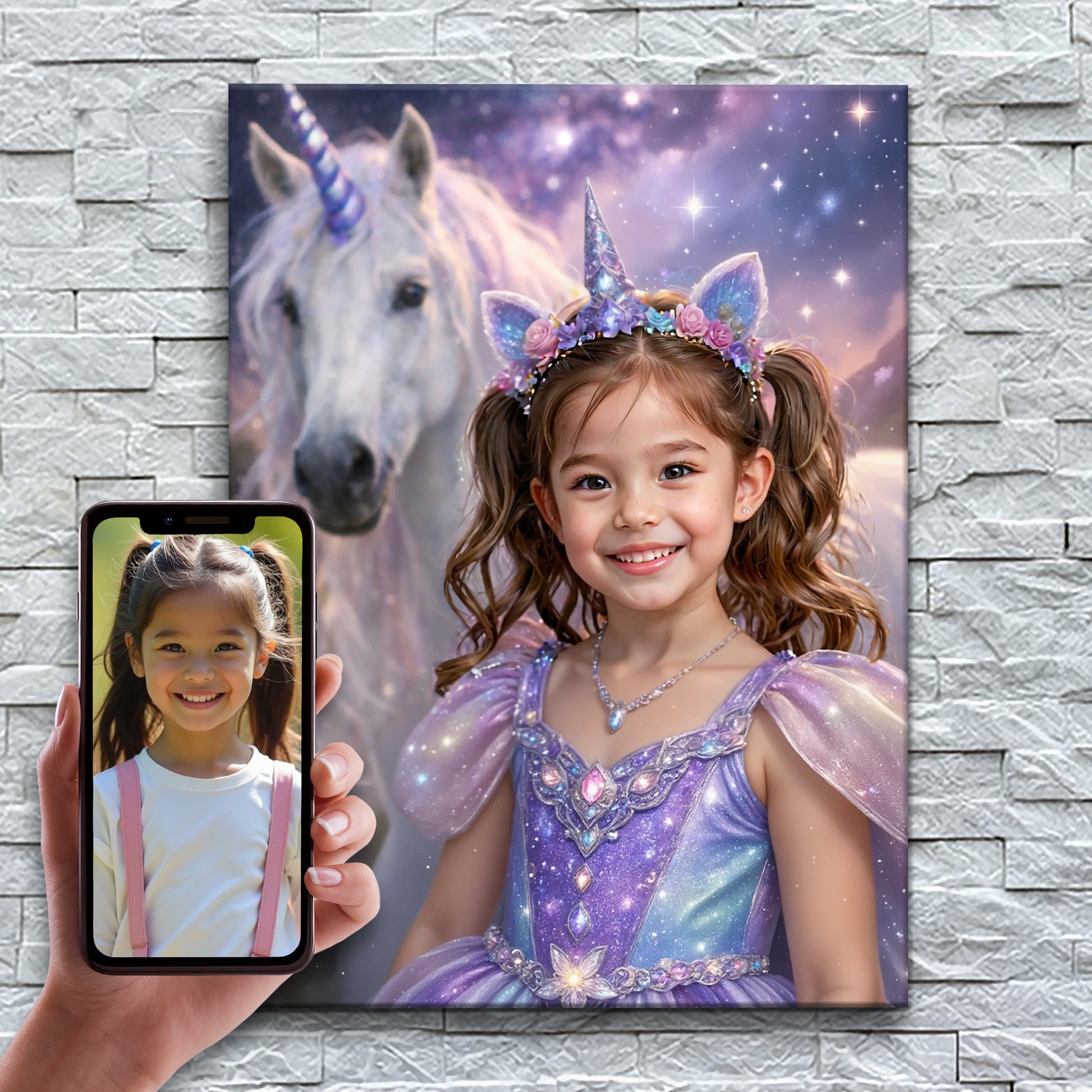 Our incredible AI creates each portrait just for them, then we print it on beautiful canvas. Join over 150,000 families who've made their kids feel like stars!