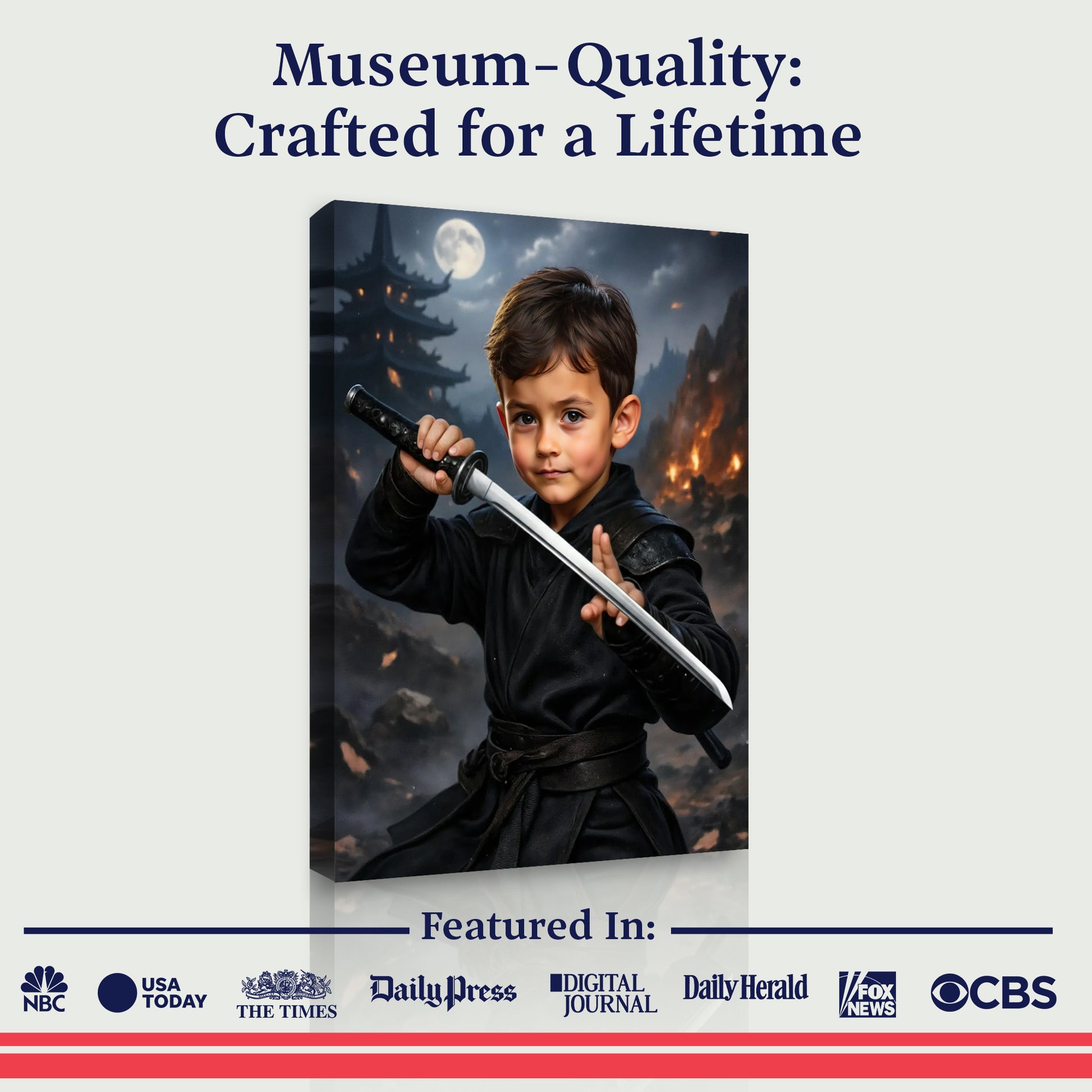 Eis wonnerbar kënschtlech Intelligenz schaaft all Portrait nëmme fir si, duerno drécke mir et op schéine Leinwand. Schléiss dech méi wéi 150.000 Familljen un, déi hire Kanner gehollef hunn, sech wéi grouss Staren ze spieren!