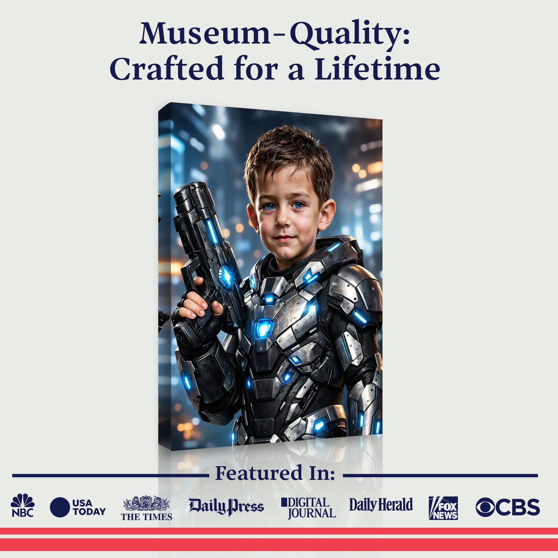 Eis wonnerbar kënschtlech Intelligenz schaaft all Portrait nëmme fir si, duerno drécke mir et op schéine Leinwand. Schléiss dech méi wéi 150.000 Familljen un, déi hire Kanner gehollef hunn, sech wéi grouss Staren ze spieren!