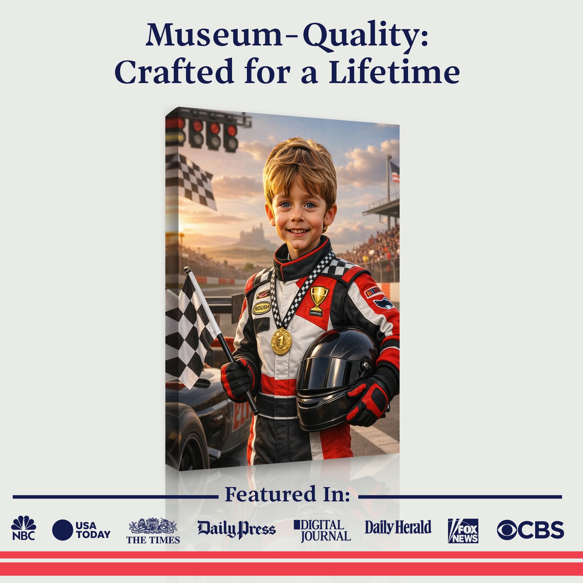 Onze ongelooflijke AI creëert elk portret speciaal voor hen, waarna we het afdrukken op prachtig canvas. Sluit je aan bij meer dan 150.000 gezinnen die hun kinderen zich als sterren hebben laten voelen!