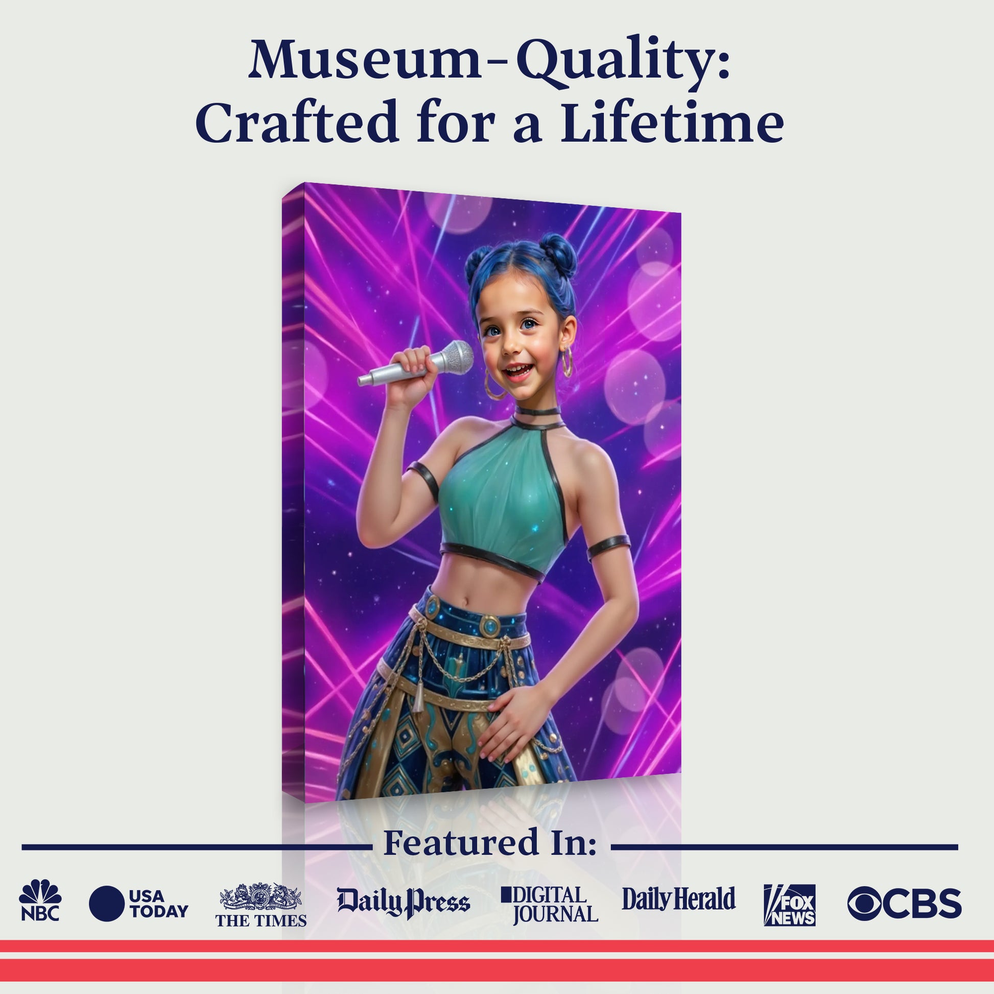 Our incredible AI creates each portrait just for them, then we print it on beautiful canvas. Join over 150,000 families who've made their kids feel like stars!