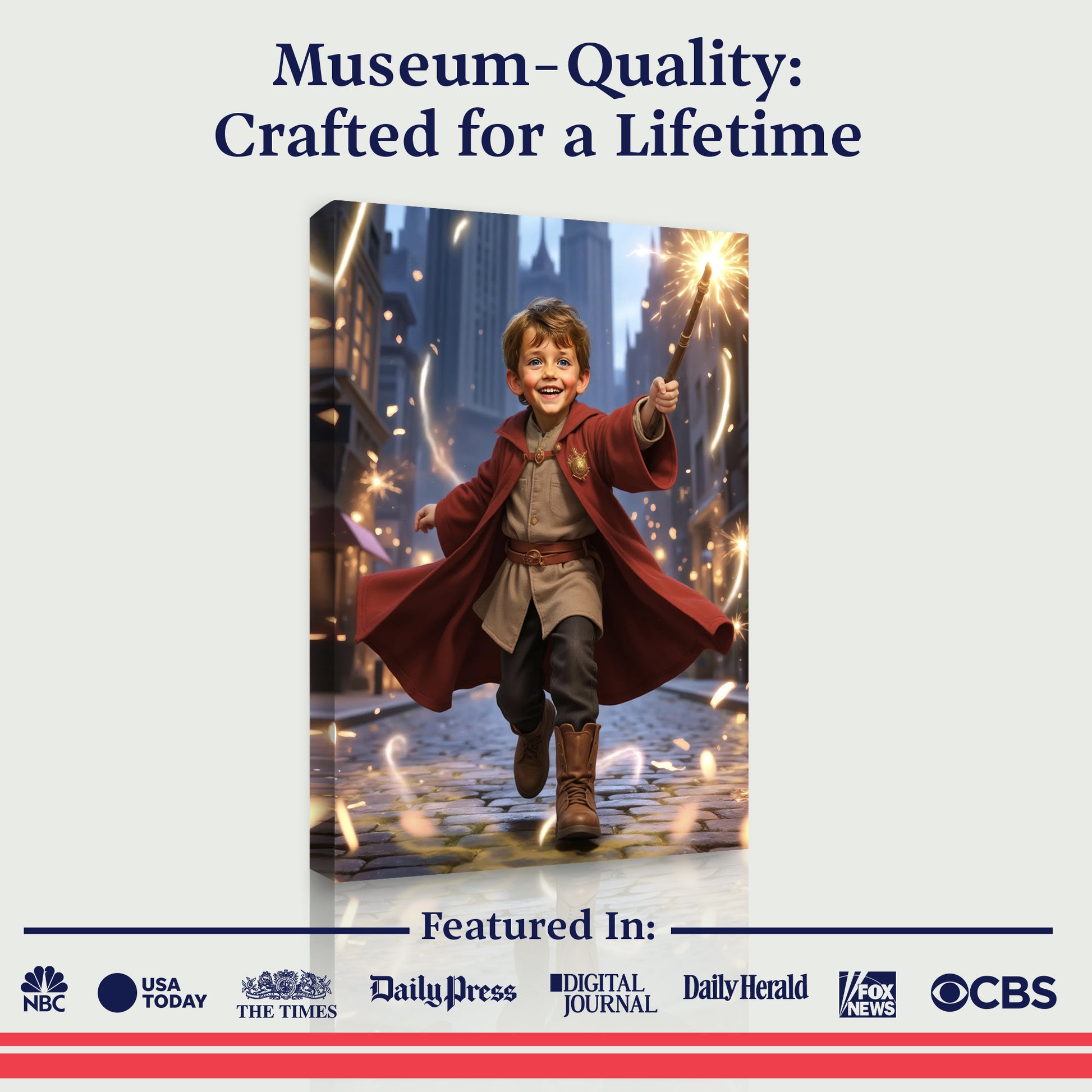 Our incredible AI creates each portrait just for them, then we print it on beautiful canvas. Join over 150,000 families who've made their kids feel like stars!