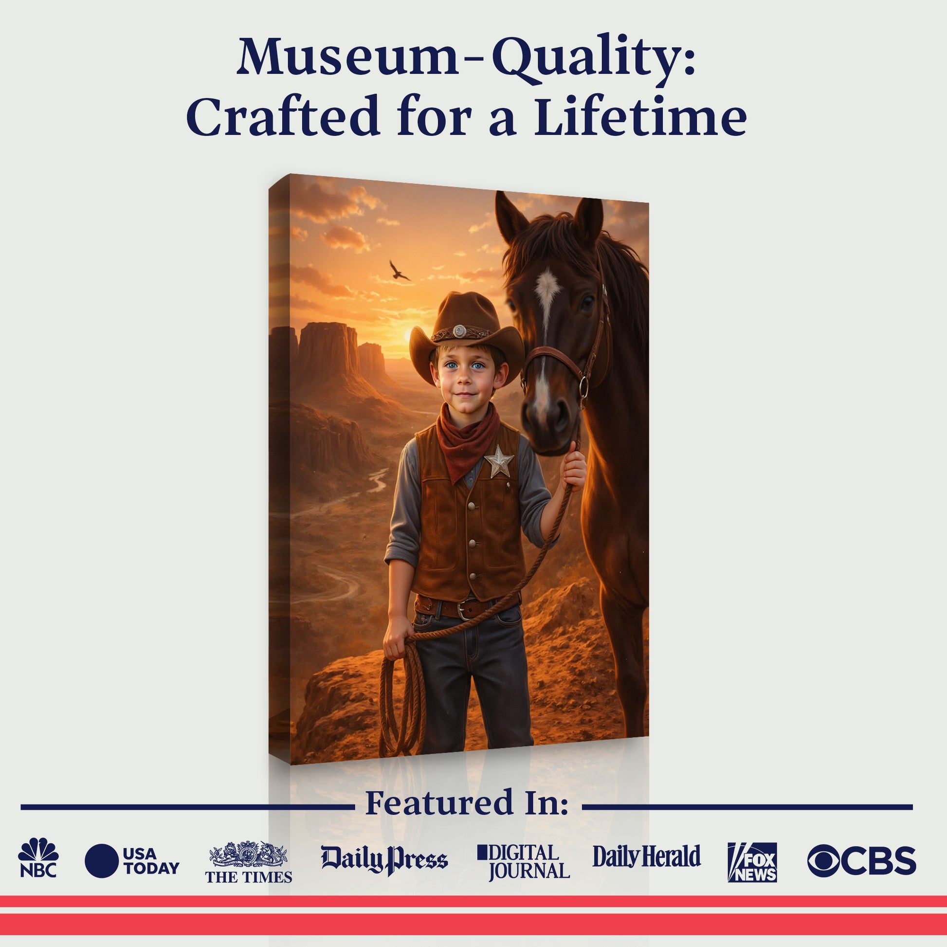 Our incredible AI creates each portrait just for them, then we print it on beautiful canvas. Join over 150,000 families who've made their kids feel like stars!